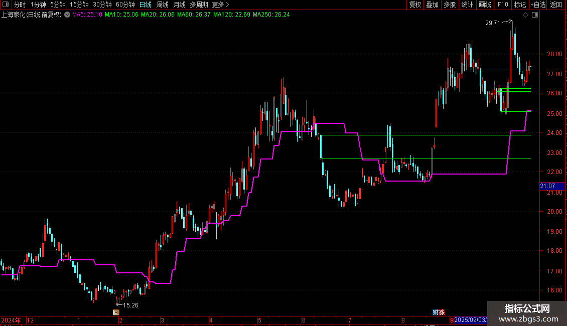 图中每条线都是压力线,相反每一条也是支撑线。指标在沙盘推演中,可以看到股价在一些压力点附近来回震荡,下跌过程中绿线成为支撑点,上涨过程中绿线就成了压力点。