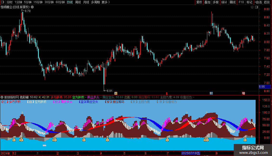 跟庄多头:IF(K>=D,D,DRAWNULL),NODRAW,COLORMAGENTA;