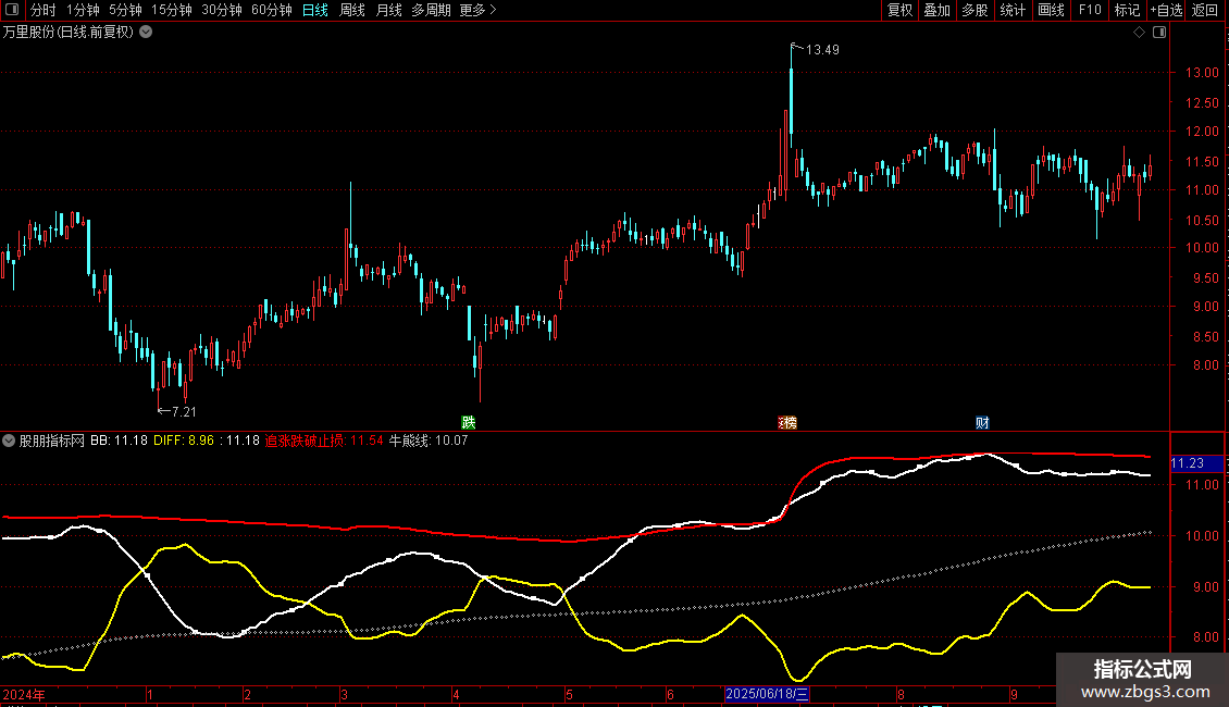 四,注意红线,如果三点交于一点,碰巧站上红线,此时强势大牛 跌破红线是一定要止损的,跌破红线实际上股价已经回落一些了。