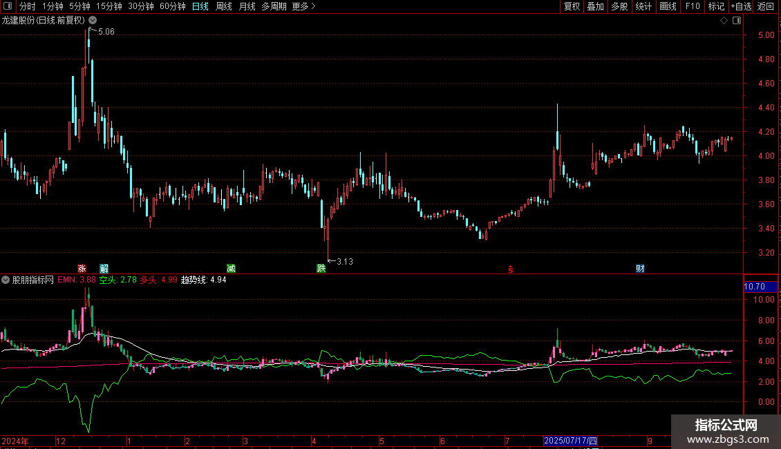 趋势线:IF(进出线<FS,FS,进出线),COLORWHITE;