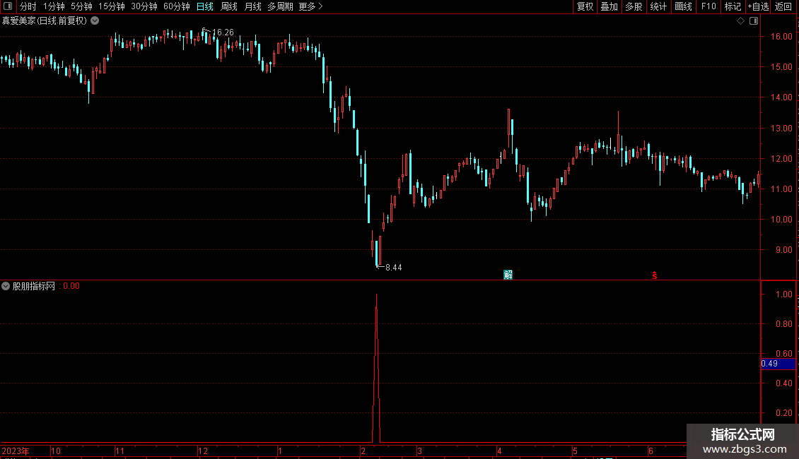 PI:=VAR3C AND (CLOSE>OPEN*1.06 OR CLOSE>REF(CLOSE,1)*1.038) AND VOL<REF(VOL,1)*2.8 OR CLOSE<MA(CLOSE,48)*0.7 AND (COUNT(CLOSE<OPEN*0.97,2)=2 AND DPO>-3.7 OR COUNT(HIGH/LOW>1.065,5)>3);