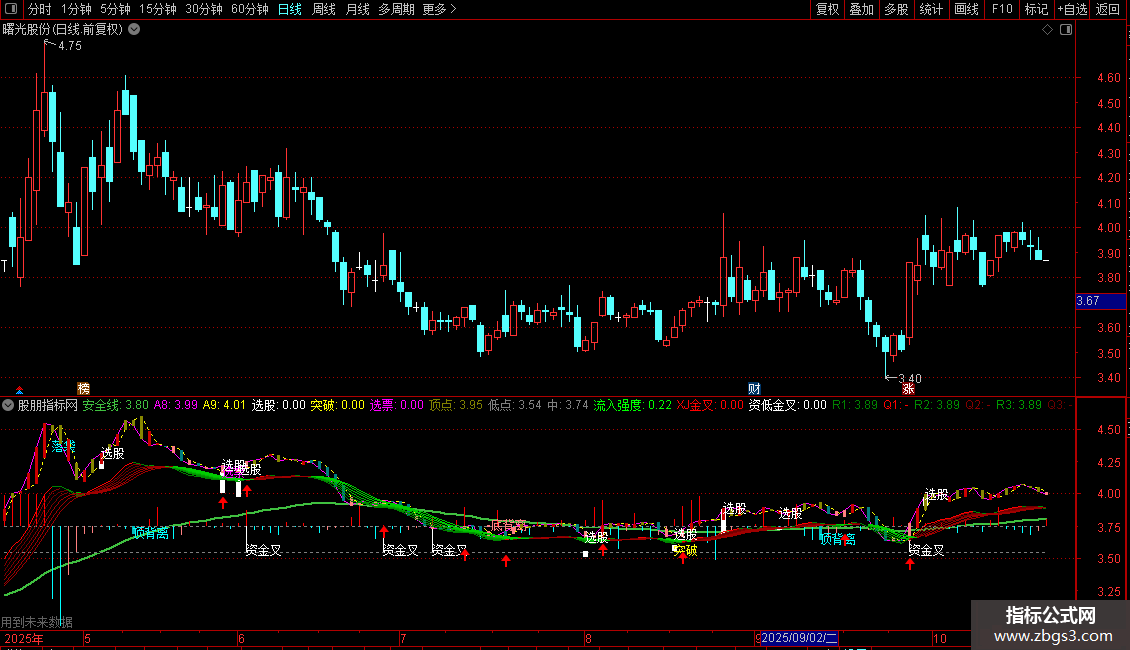 通达信源码,主副图都可以,当出现"突破"可买入,资金金叉可操作短线。