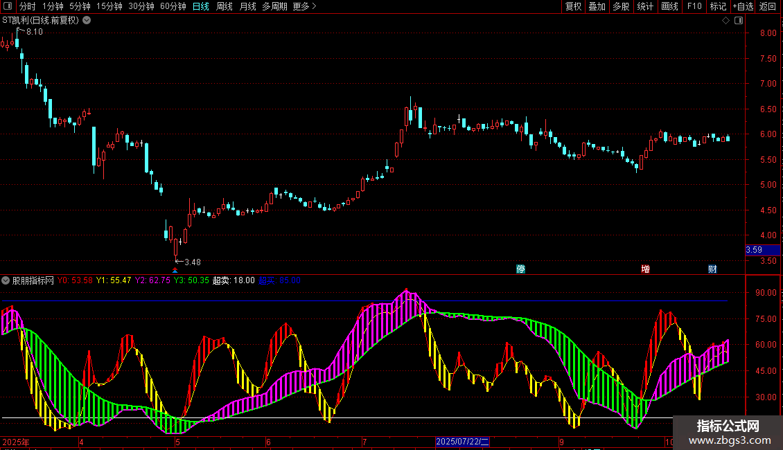Y0:SMA(RSV,3,1),COLORRED,LINETHICK1;