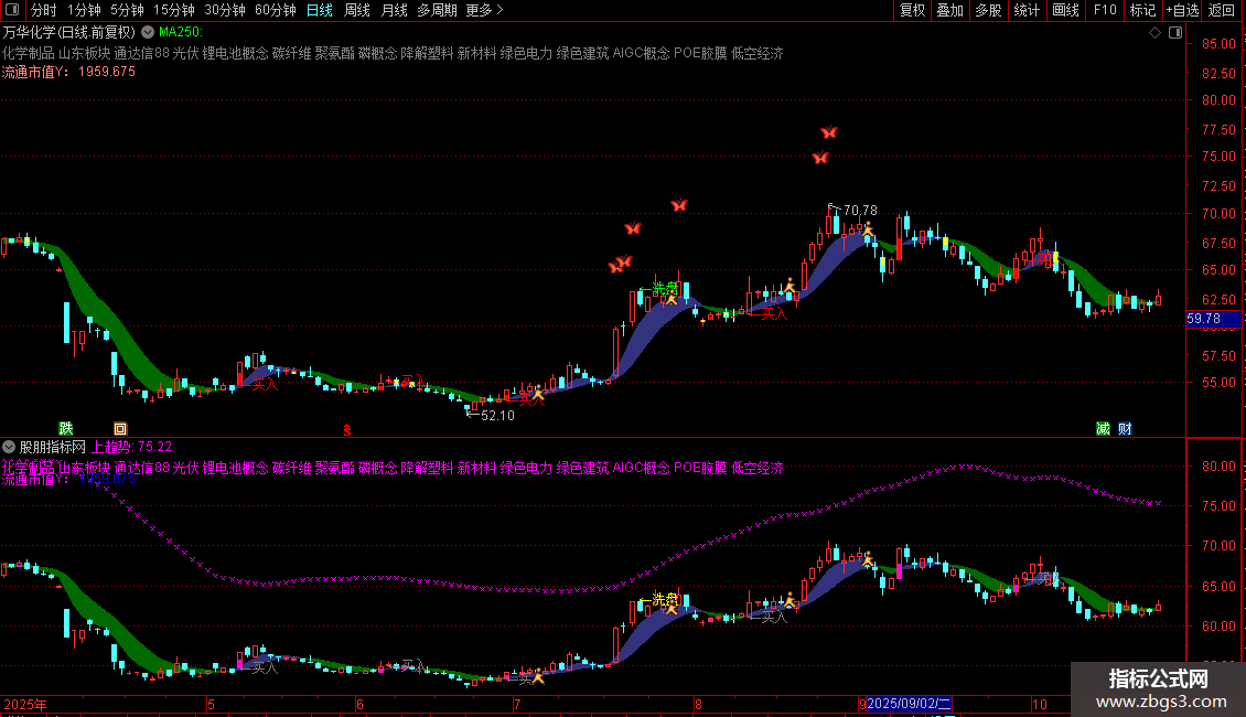 趋势强度:IF(CLOSE>次上趋势,HG66,HG68),COLORMAGENTA;