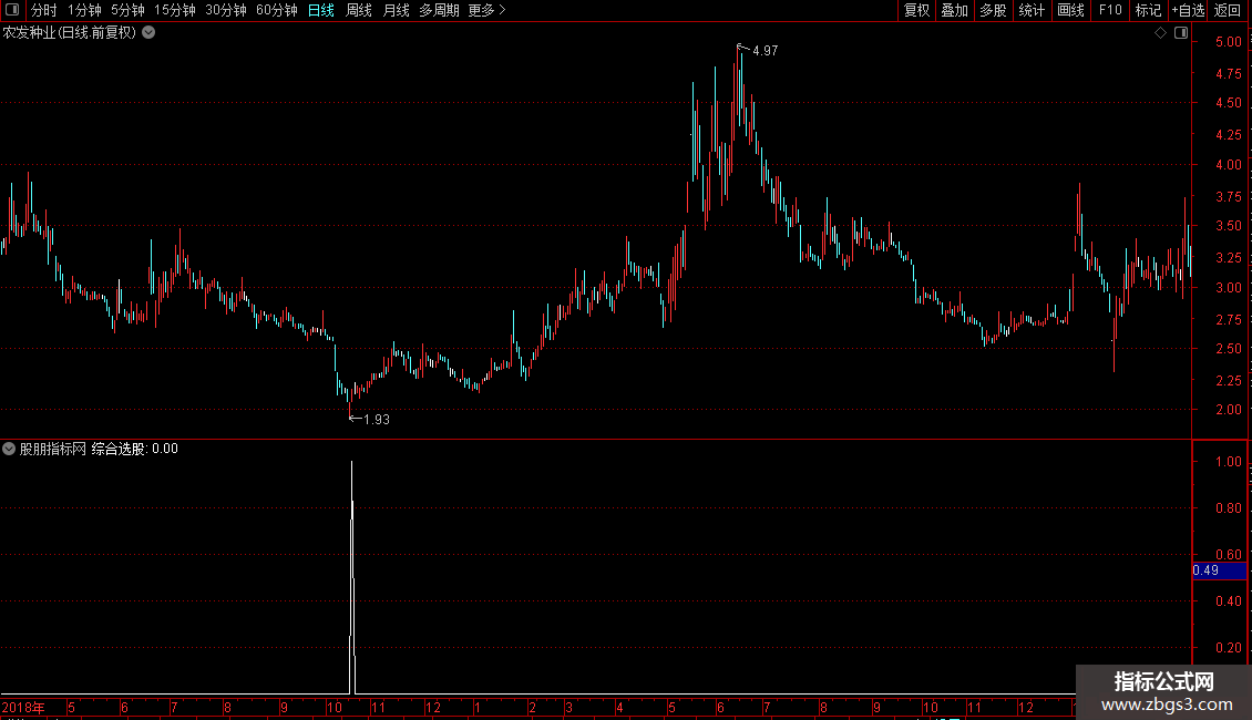 原先发表的综合抄底指标通过综合选股按钮是可以选股的,但很多朋友不会操作,为方便大家选股,做了个选股指标满足大家的要求。