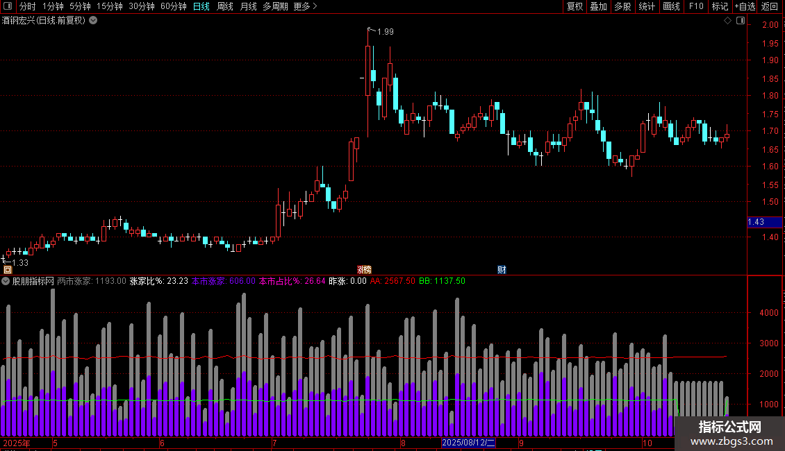 本市占比%:INDEXADV/(INDEXADV+INDEXDEC)*100,COLORCC00FF,NODRAW;