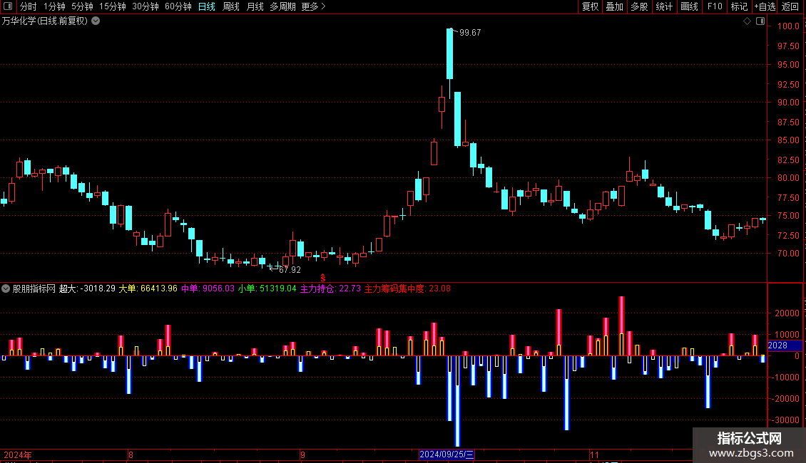 注意:超大、大、中、小单数值,以及主力持仓、主力筹码集中度等数值