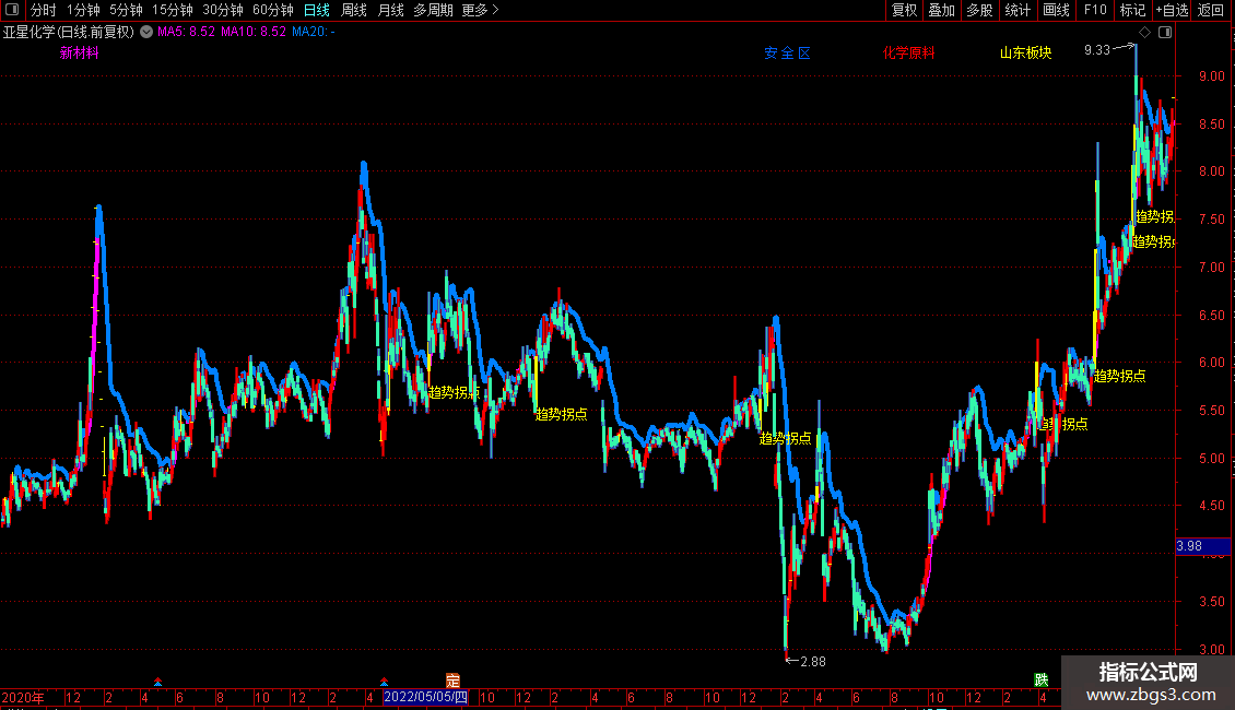 使用该指标时,可遵循以下要点:当趋势线由蓝转紫且股价上穿趋势线时,可视为买入信号;当出现“趋势拐点”提示并伴随放量,往往是加仓时机;而当趋势线由紫转蓝且股价跌破趋势线时,则应考虑卖出或减仓。