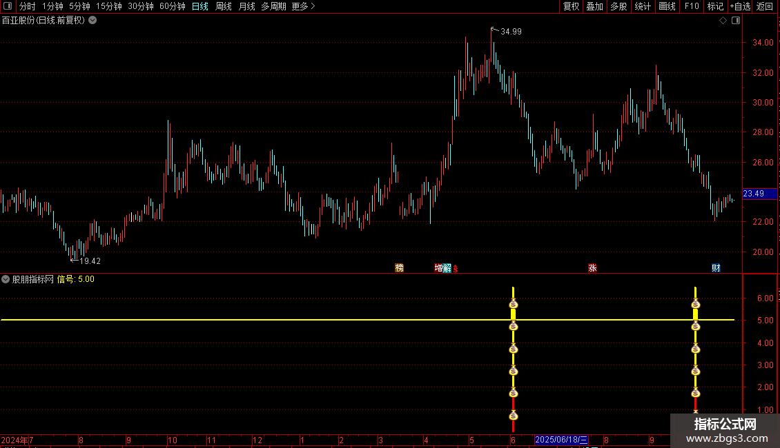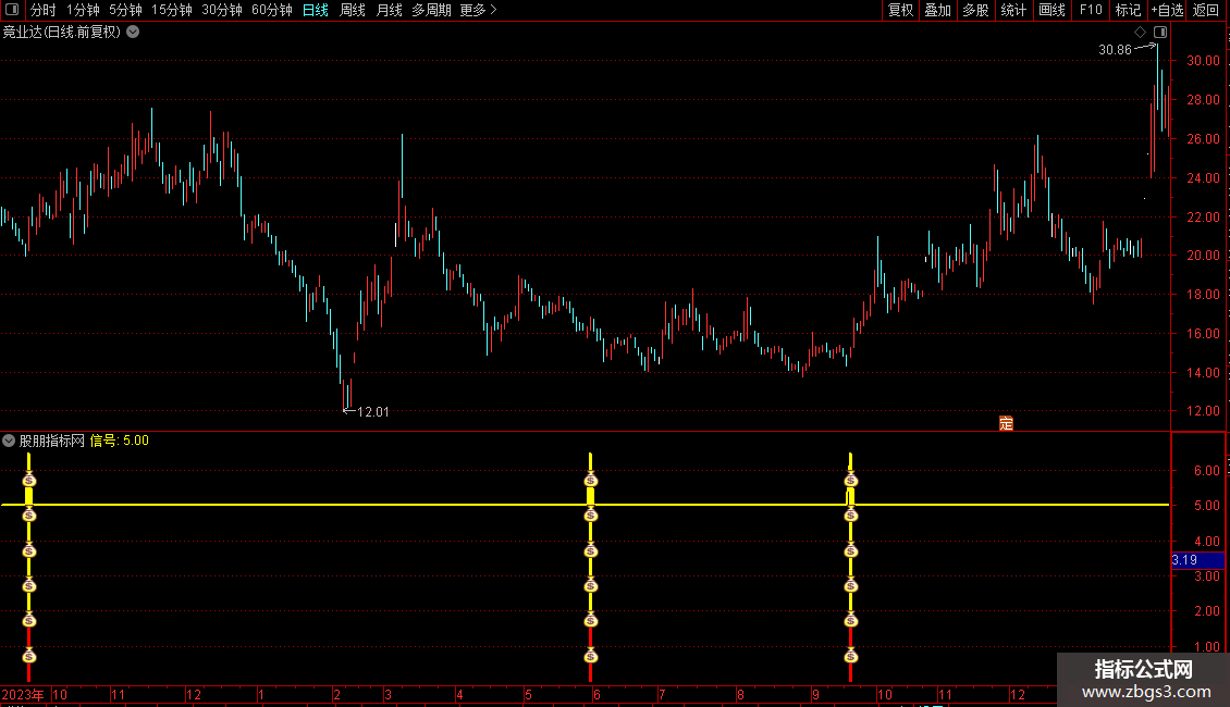 信号:IF(强势底分,6.5,5),COLORYELLOW,LINETHICK2;