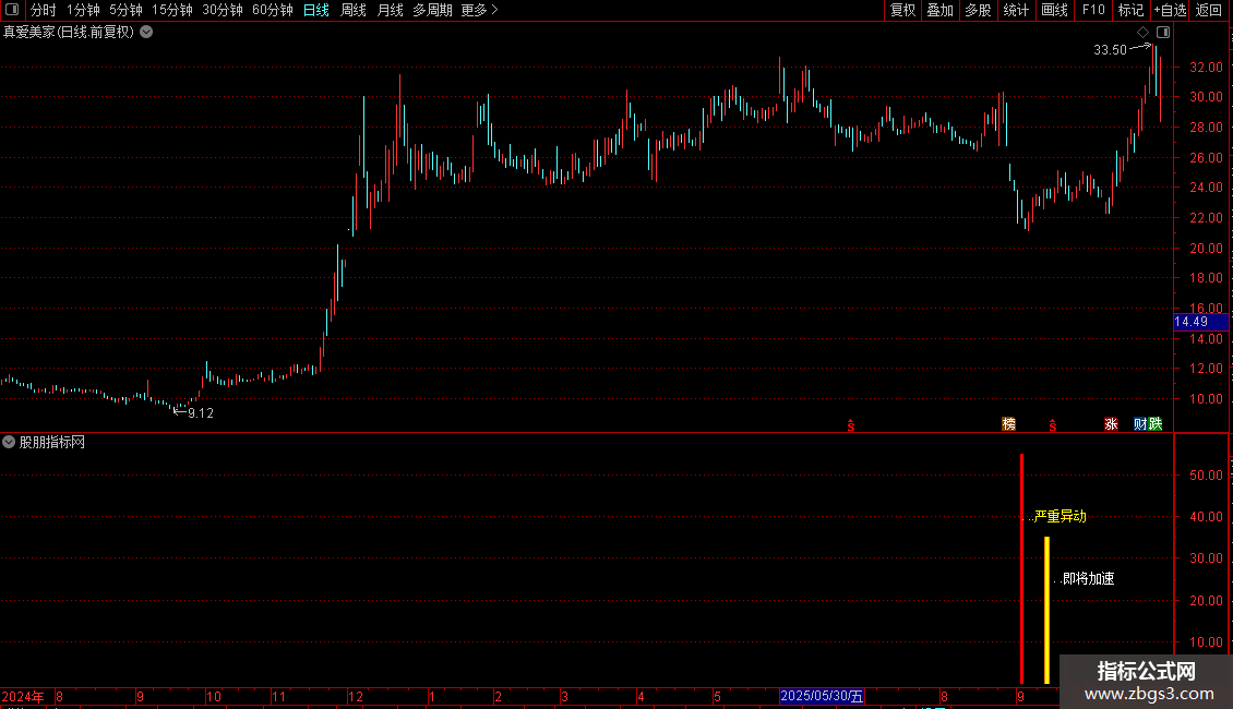 DRAWTEXT(FILTER(VAR1SJ,30)=1,25,'. . .即将加速')*HAN,COLORWHITE,LINETHICK5;