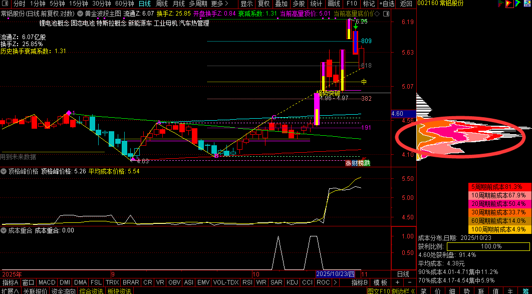 顶格筹码峰是筹码分布图中一种特殊形态,表现为某一价格区间筹码高度集中,形成几乎顶天立地的单峰形态,代表市场在该价位达成高度共识,是判断主力动向、捕捉强势股的重要技术指标。 其核心价值在于识别市场共识与主力控盘程度,是筹码在极小价格区间内集中换手”,本质是市场或主力在特定价位达成高度共识,会形成强大的支撑或压力。当股价位于顶格筹码峰下方时,该区域构成强压力位;当股价位于顶格筹码峰上方时,该区域转化为强支撑位。。在实战中,应结合 K 线形态、均线系统和市场环境综合判断,设置严格的风险控制机制。顶格筹码峰是 主力的底牌,看懂它,才能更好地跟随主力步伐,把握市场机会。