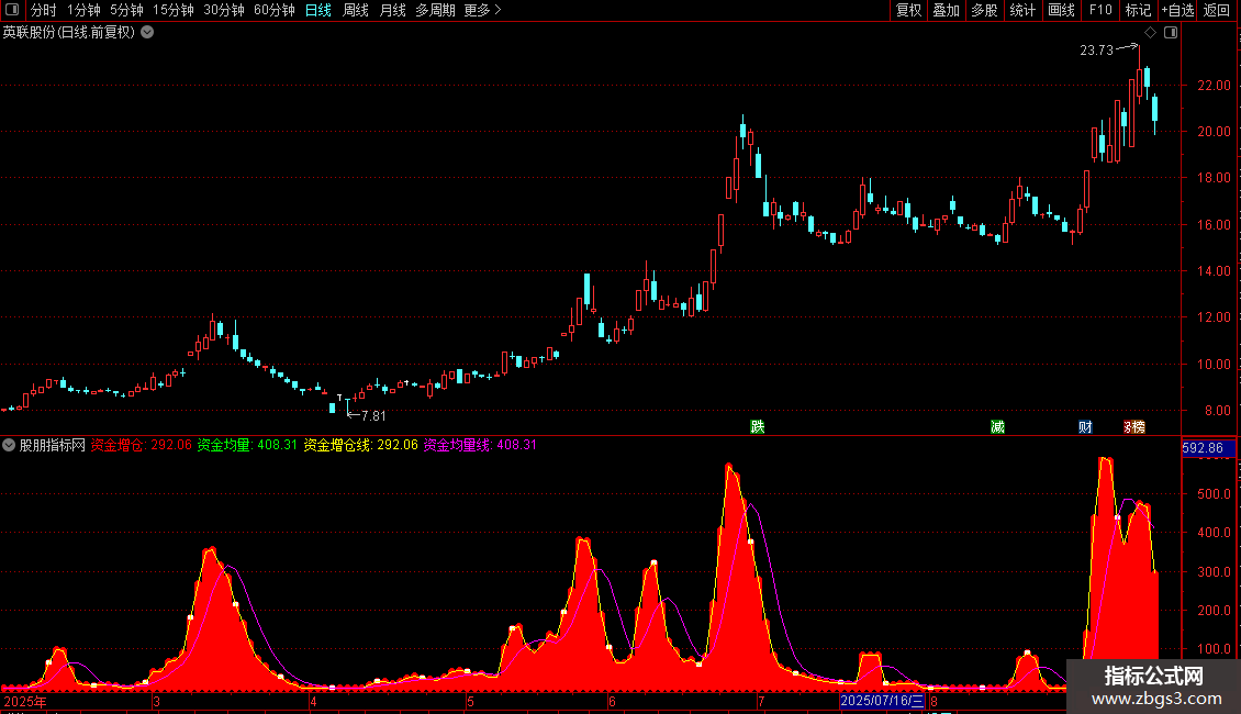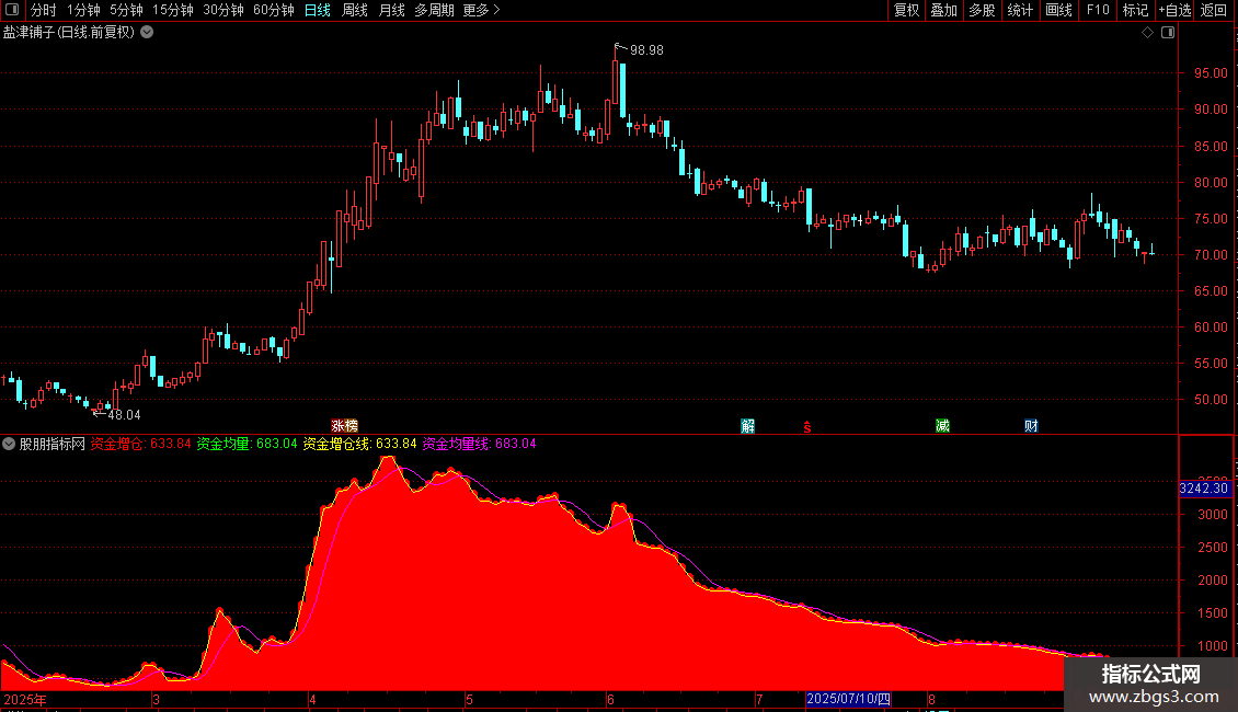 资金均量线:MA(DC,5),COLORMAGENTA;