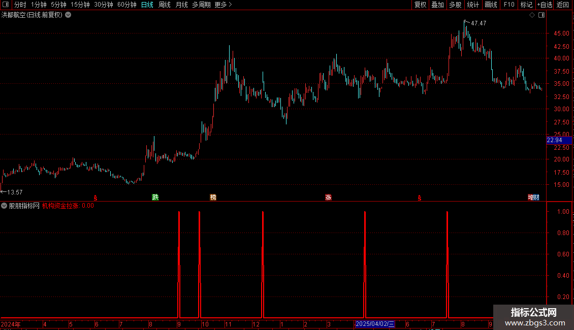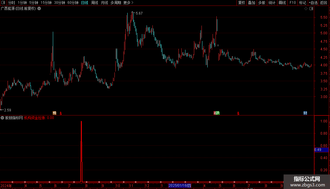 指标通过计算价格在不同周期的高低位置、资金流向和持股集中度等维度,综合判断机构资金进场拉涨的时机。当多个技术信号(如中长期趋势突破、资金强度达标、筹码集中)与短期均线金叉同步出现时,发出买入信号。