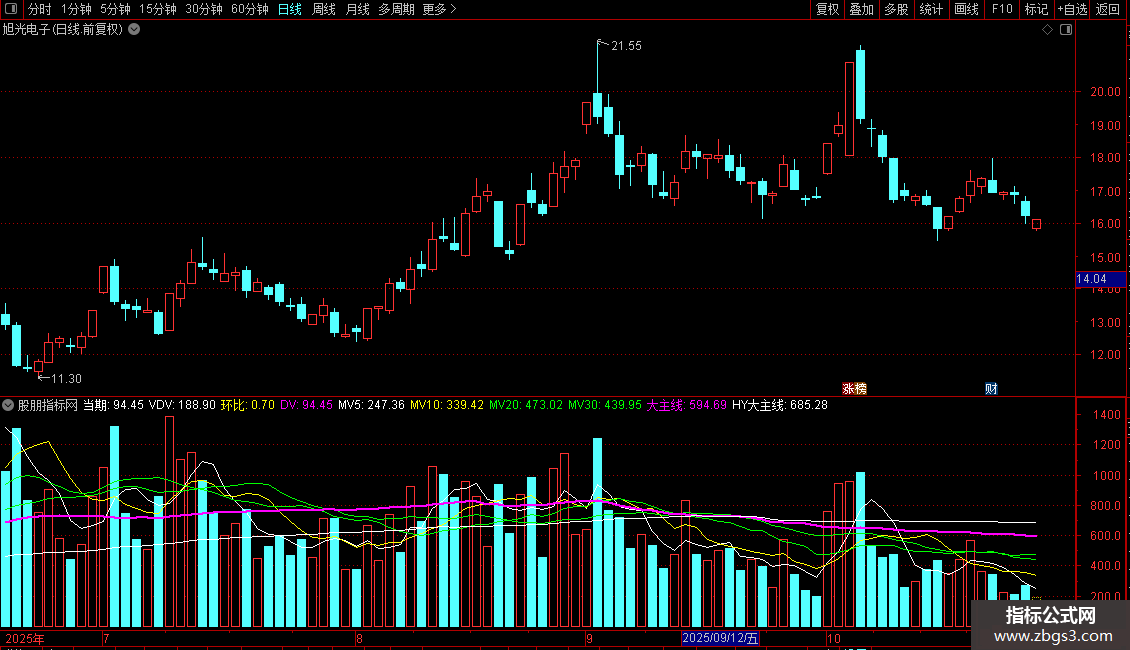 输出当期:成交量(手)/1000,VOLSTICK 画白色