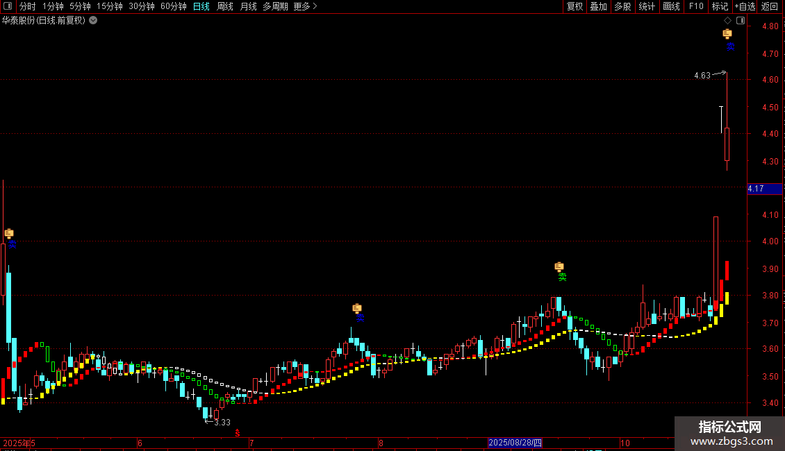 DRAWTEXT(CROSS(V2,V3),HIGH*1.02,'卖'),COLORBLUE;