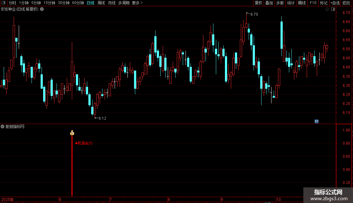 指标主要功能是识别股票交易中的“机游合力”信号,用于捕捉潜在的强势股机会。其核心操作策略是结合价格突破、均线系统、MACD指标和成交量变化,筛选出可能启动的股票;。