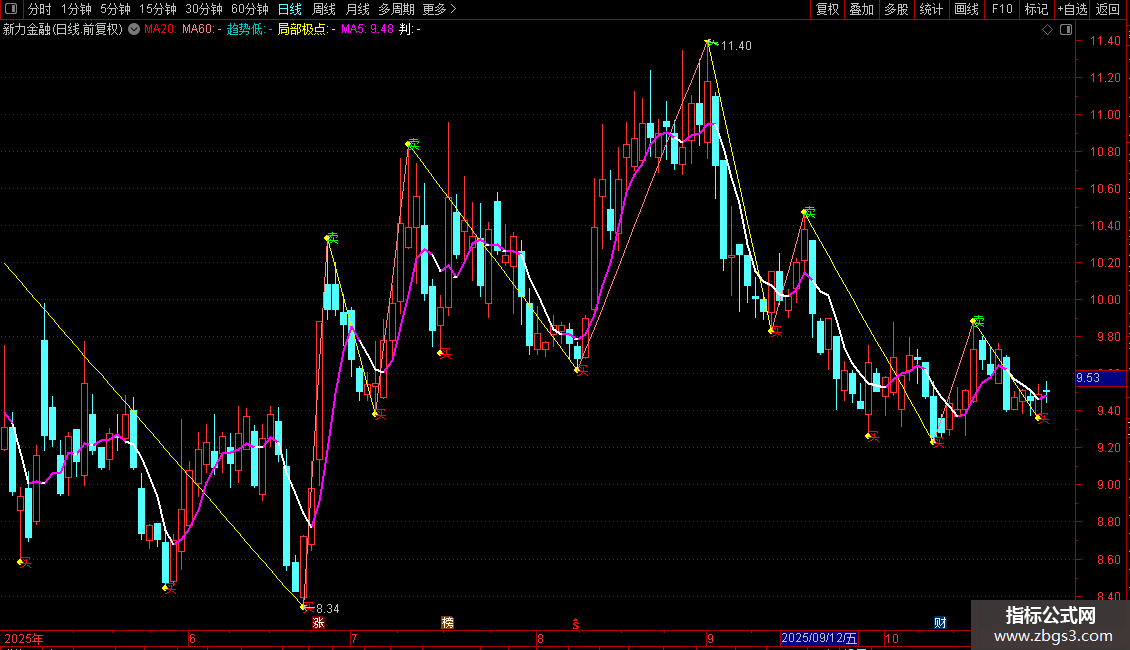 局部极点:IF(极点保留=-1,L,IF(极点保留=1,H,DRAWNULL)) CIRCLEDOT COLORYELLOW;