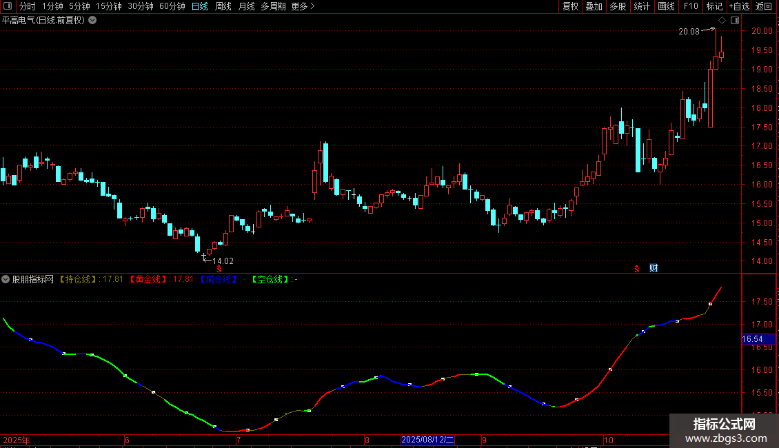 【黄金线】:IF(M48,【持仓线】,DRAWNULL),COLORRED,LINETHICK2;