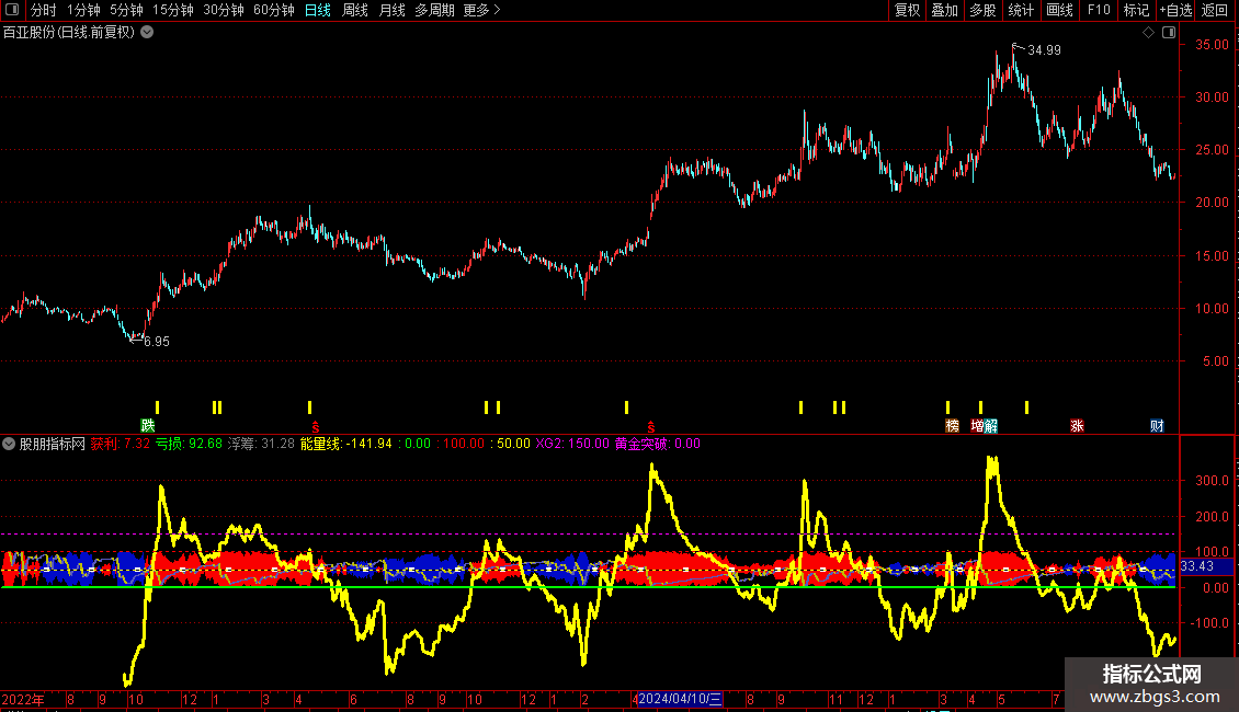 获利:=WINNER(C)*100,COLORRED;