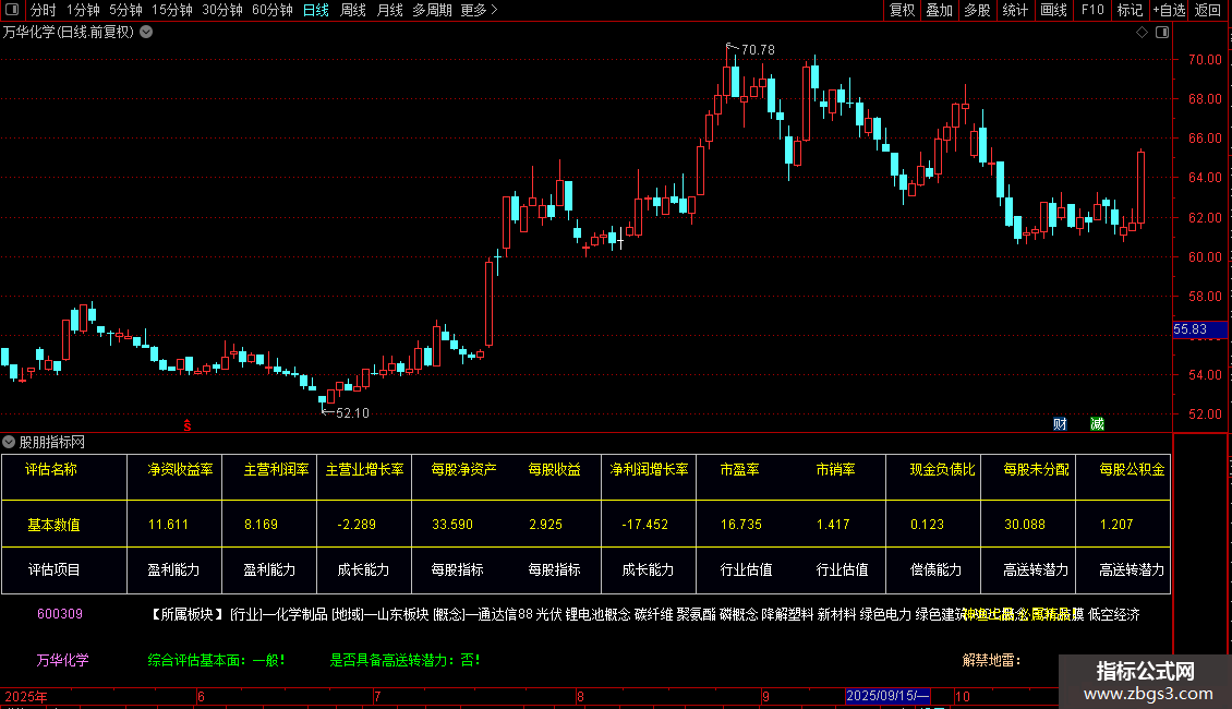 DRAWTEXT_FIX(一般,0.125,0.85,0,'综合评估基本面:一般!'),COLORGREEN;