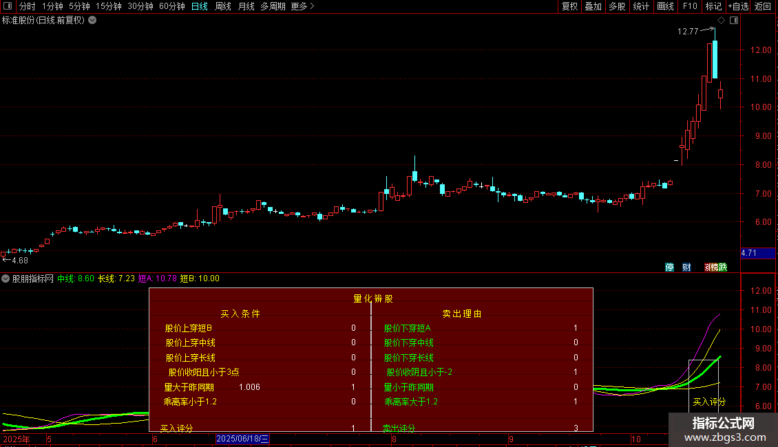 A10赋值:如果收盘价>中线,返回A3,否则返回中线*1.02
