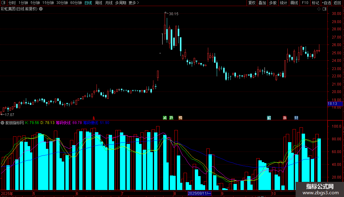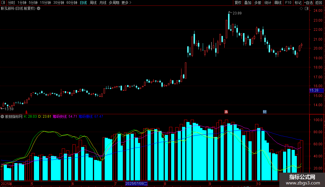 筹码快线:EMA(WINNER(C)*100,13),COLORMAGENTA;