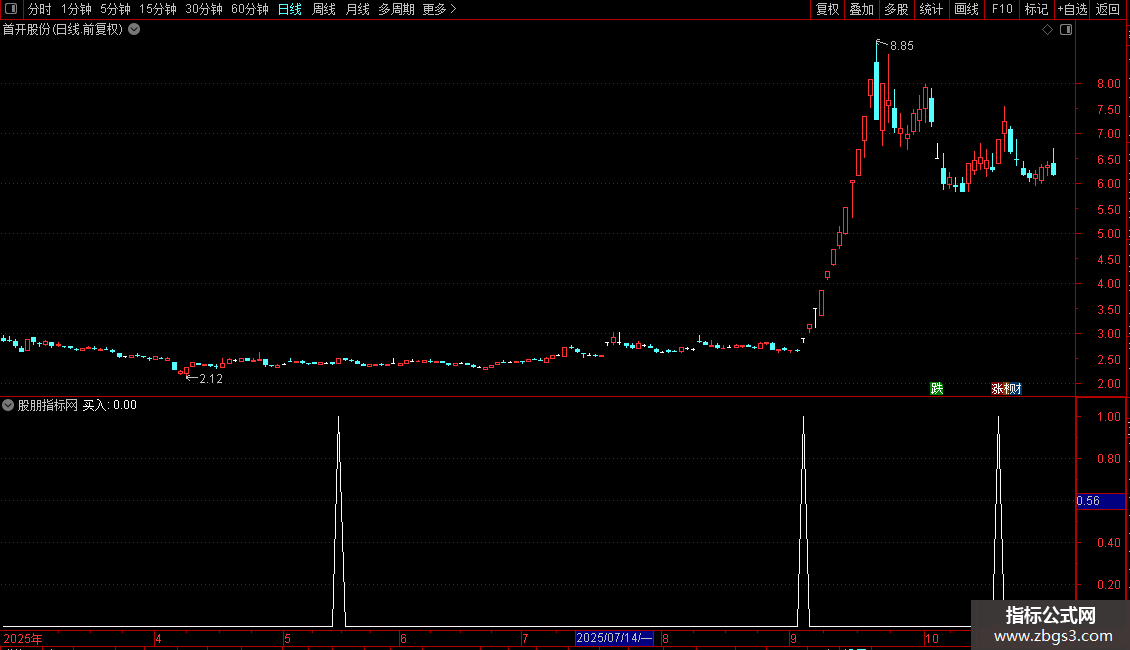 以上情况必须紧盯5分钟至60分钟K线分时指标,特别是60分钟线,在盘整期间,60分钟指标如KDJ,一旦在底部形成金叉状态,而时间上又刚好吻合的话,就可以择机介入。