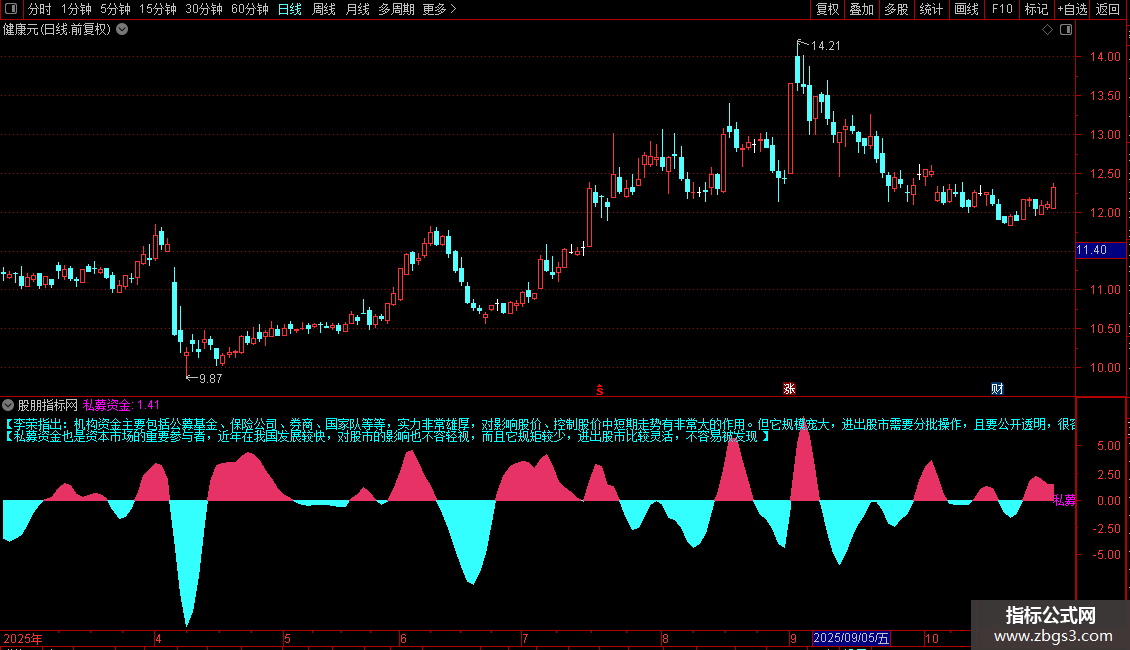 DRAWTEXT_FIX(1,0.00,0.06,0,'【私募资金也是资本市场的重要参与者,近年在我国发展较快,对股市的影响也不容轻视,而且它规矩较少,进出股市比较灵活,不容易被发现 】'),COLORCYAN;
