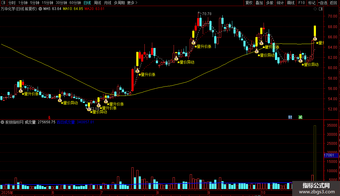 DRAWTEXT(ZBGS318 AND AA,L*0.98,' ★量价异动'),COLORYELLOW;