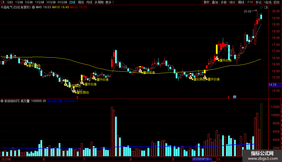 副图层面需观察黄色量柱与加号图标的共振表现——当两者同步出现时,可判定为龙头股启动的确定性机会。