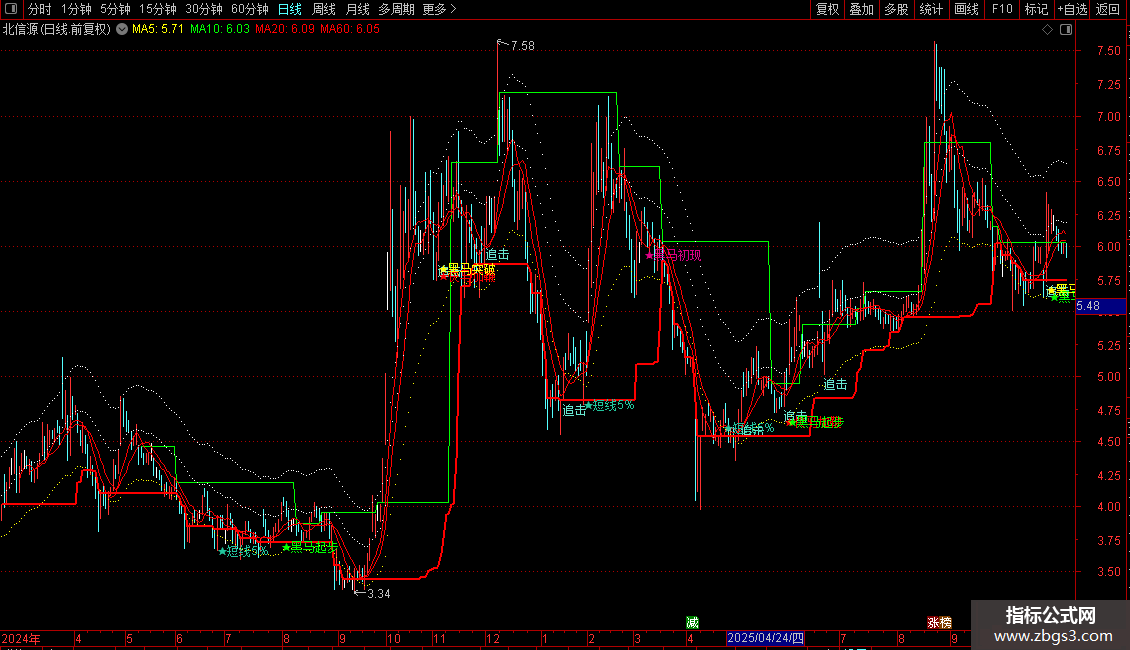 X5:=(MA(黑马捉妖,21) + (2 * STD(黑马捉妖,21)));