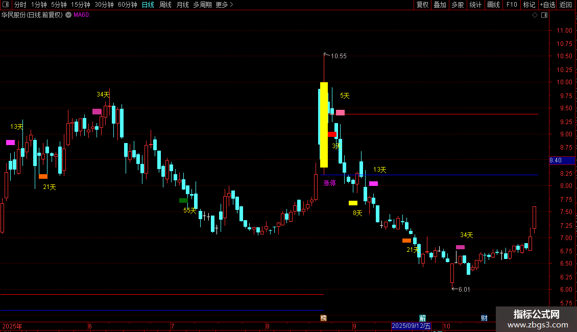 DRAWTEXT(VARZT=7,L*0.95,'8天'),COLORYELLOW;