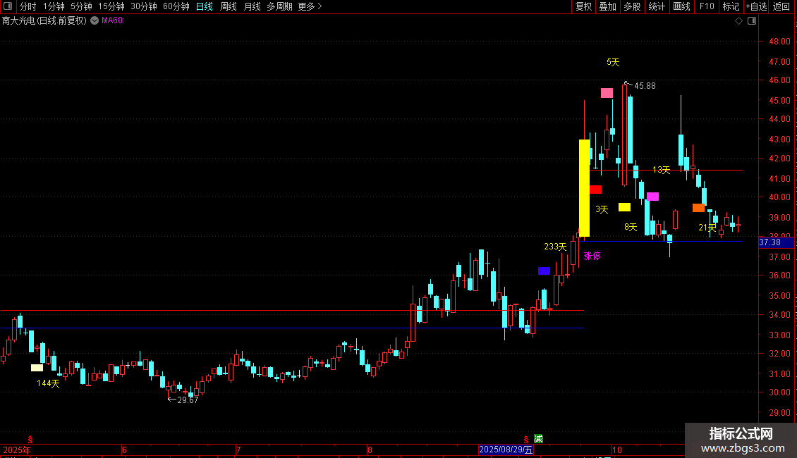 DRAWTEXT(VARZT=2,L*0.95,'3天'),COLORYELLOW;