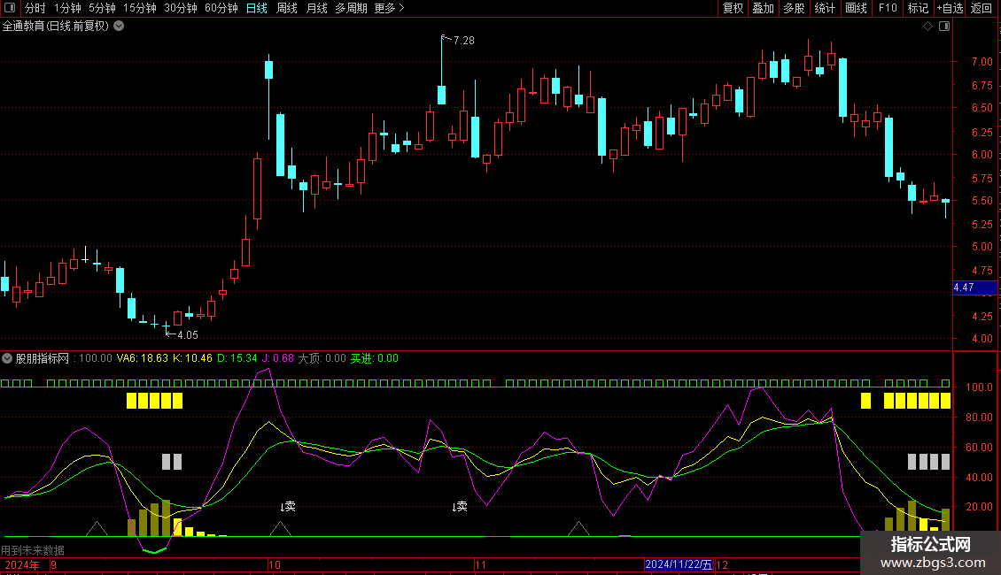 主力进场:STICKLINE(VA5>REF(VA5,1),0,VA6,2,0),COLORBROWN;