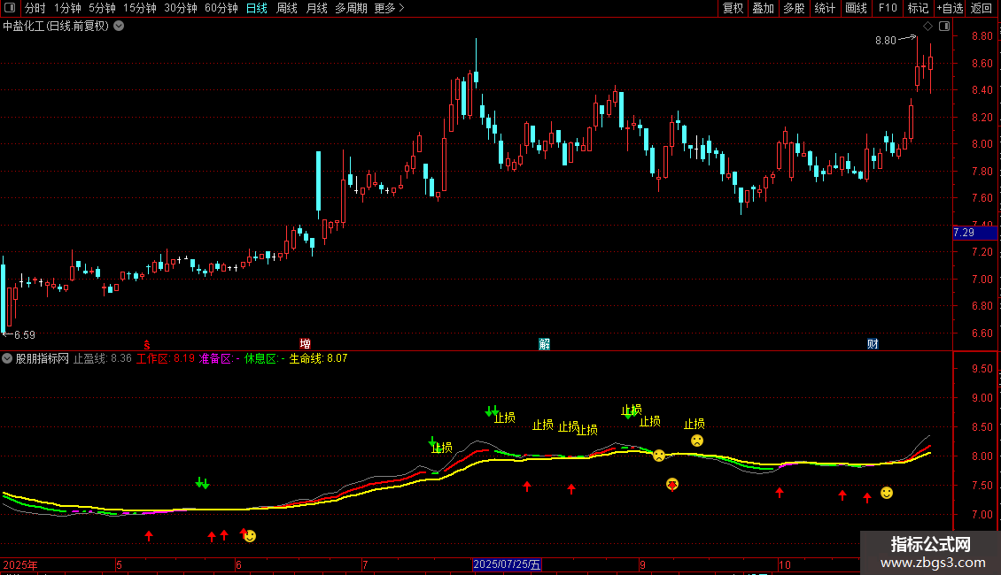 休息区:IF(C<工作线,工作线,DRAWNULL), COLORGREEN, LINETHICK2;