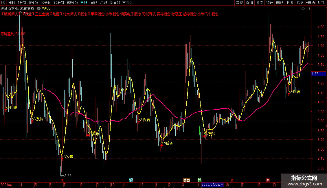 DRAWTEXT(有庄,L-0.0011,'↖V反转'),COLORYELLOW;
