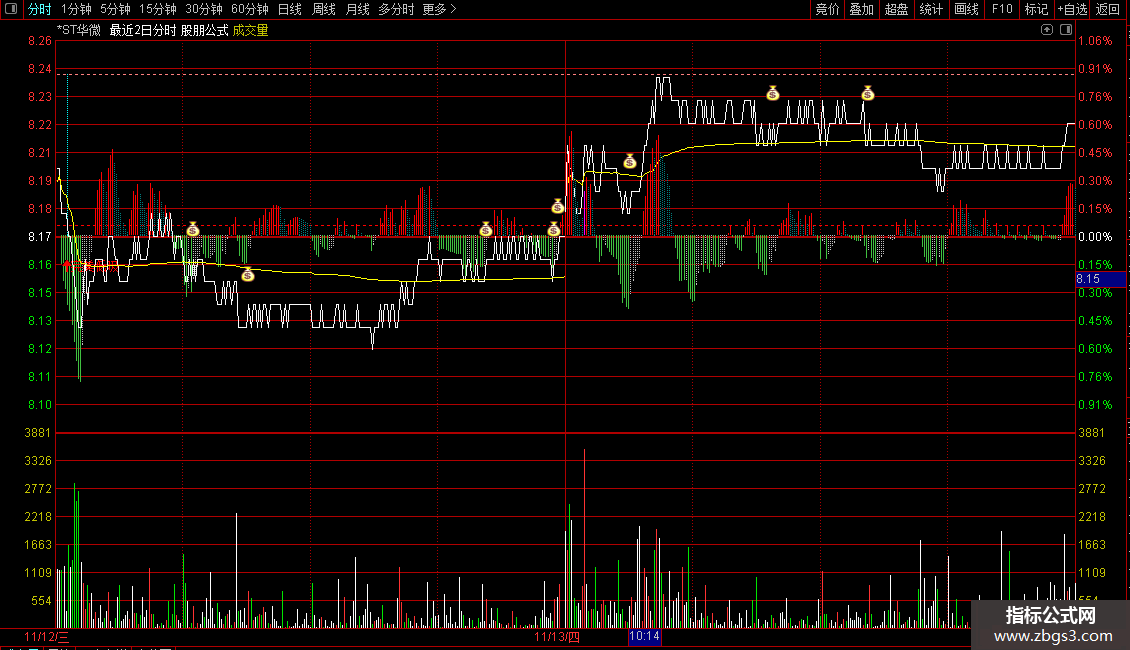 均线:=IF(BETWEEN(C/(SUM(AMOUNT,0)/SUM(vol*100,0)),1.05,0.95)=0,MA(C,0),(SUM(AMOUNT,0)/SUM(VOL*100,0))),COLORYELLOW,DOTLINE;