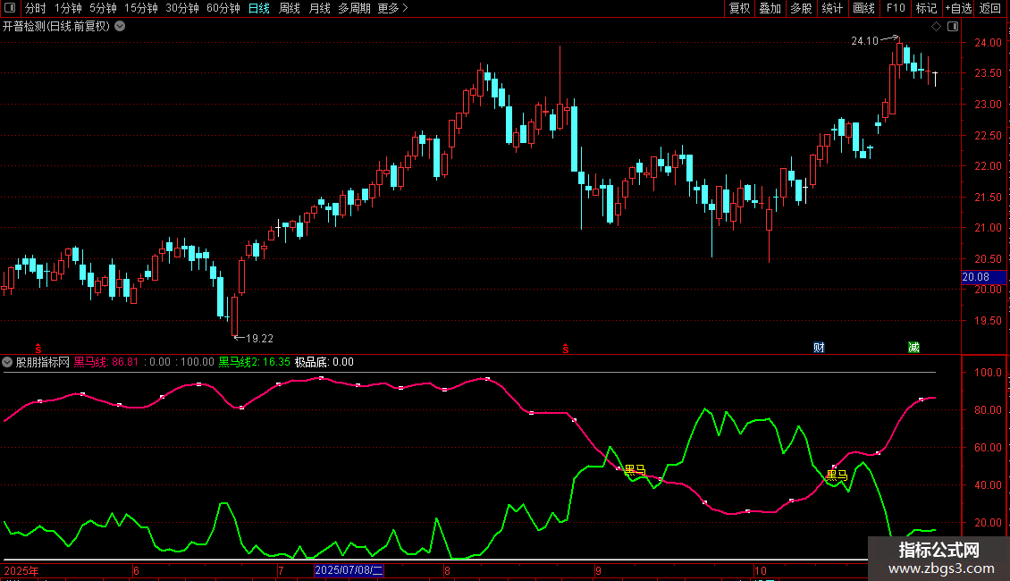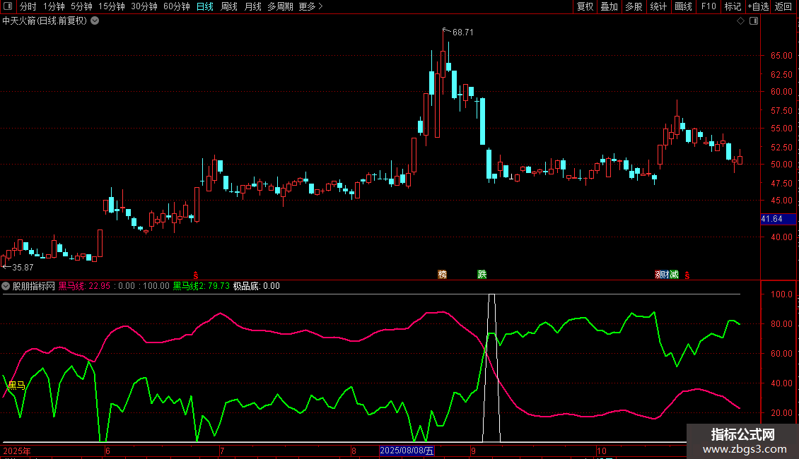 黑马线2:100*(HHV(HIGH,60)-CLOSE)/(HHV(HIGH,60)-LLV(LOW,60)),LINETHICK2,,;