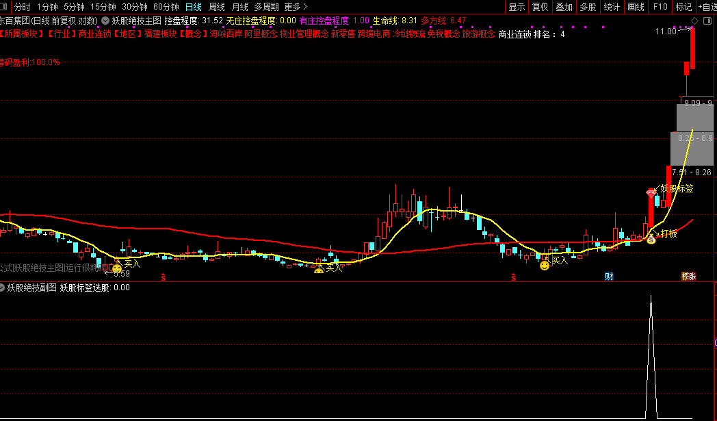 主图指标是一款专注于妖股挖掘、趋势跟踪和买卖信号提示的综合技术指标,适用于通达信软件个股行情界面。核心逻辑围绕价格波动、量能变化、筹码结构、主力控盘和板块属性五大维度,通过多条件组合筛选潜在妖股,同时提供买入、卖出、打板及妖股标签等明确信号,辅助短线交易决策。