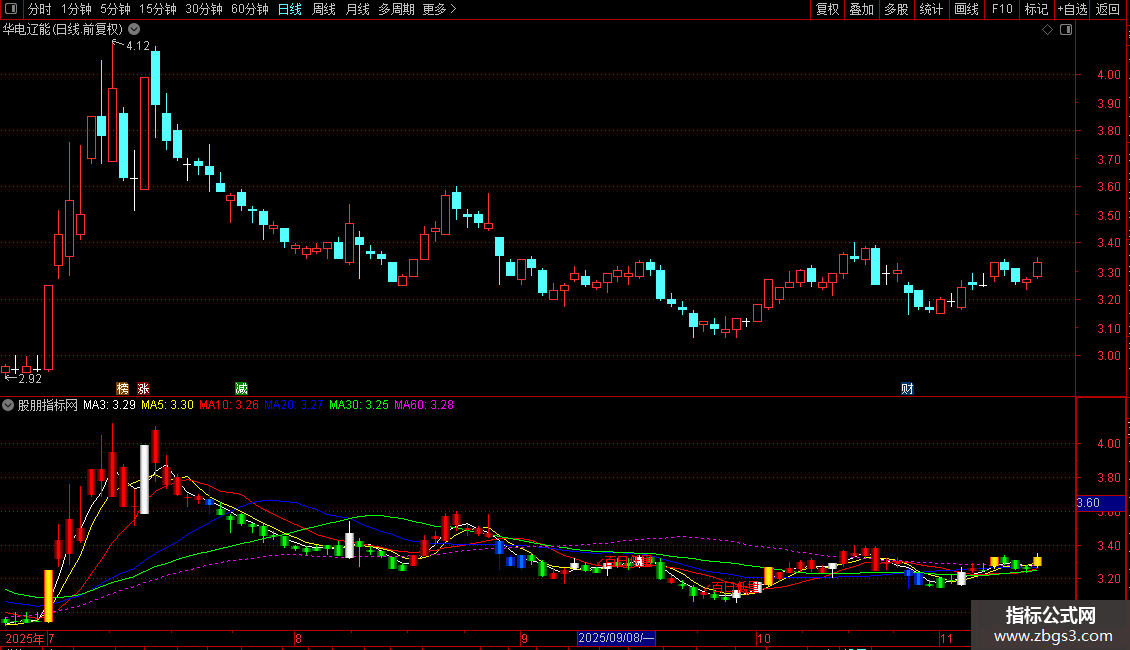 输出MA3:收盘价的3日简单移动平均,画白色