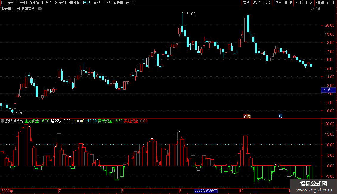 主力资金:(B-B1)*100/B, LINETHICK2,COLORGREEN;