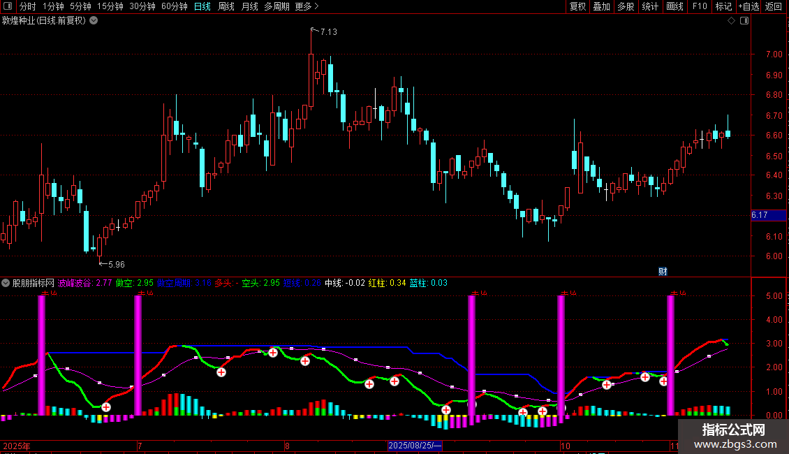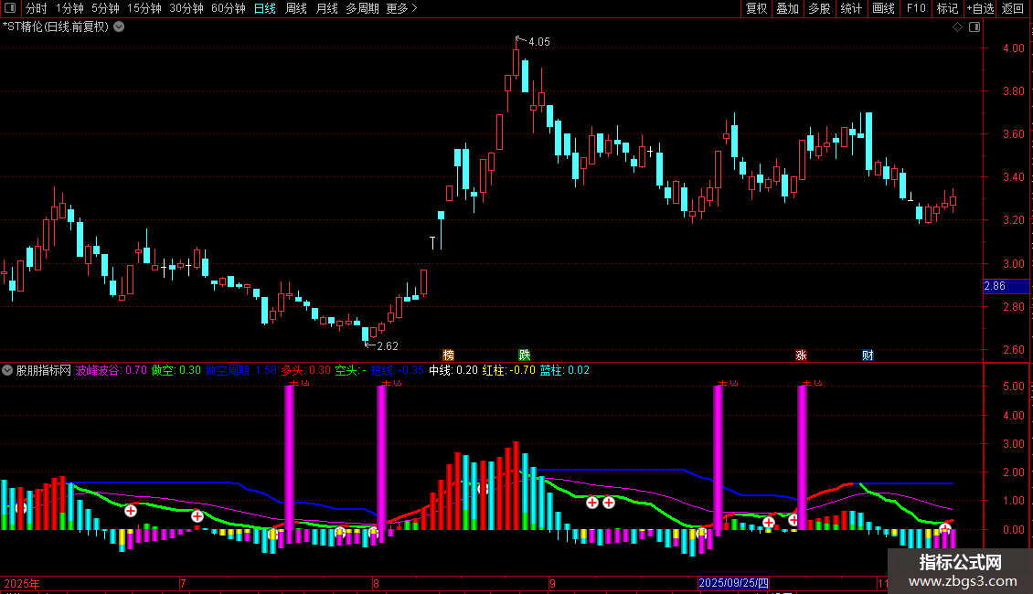 波峰波谷:SMA(拉升力A,3,1),COLORFF00FF;