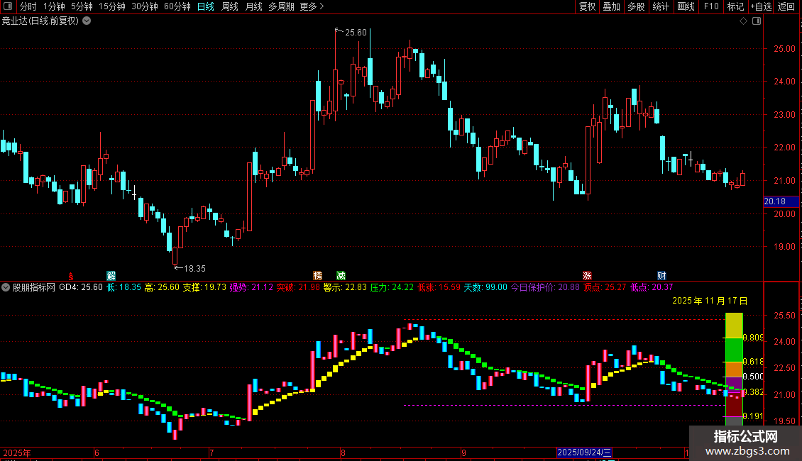 支撑:IF(CURRBARSCOUNT<=N/30,DD+KJ*0.191,DRAWNULL),COLOR00FFFF;