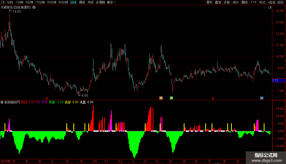 STICKLINE(洗盘=1,-0.3,0.3,3,0),COLORWHITE;