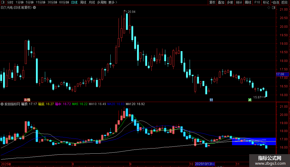 当满足条件是否最后一个周期=1ANDLJ 当满足条件是否最后一个周期=1ANDLJ=ZT时,在HT和LT位置之间画柱状线,宽度为N*8,0不为0则画空心柱.,画深灰色