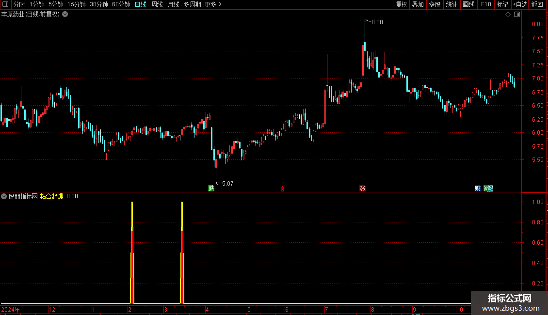 指标识别短期均线粘合后的突破时机。当多条均线极度靠拢(粘合),同时出现价格上涨、成交量放大且短期均线呈多头排列时,发出买入信号。