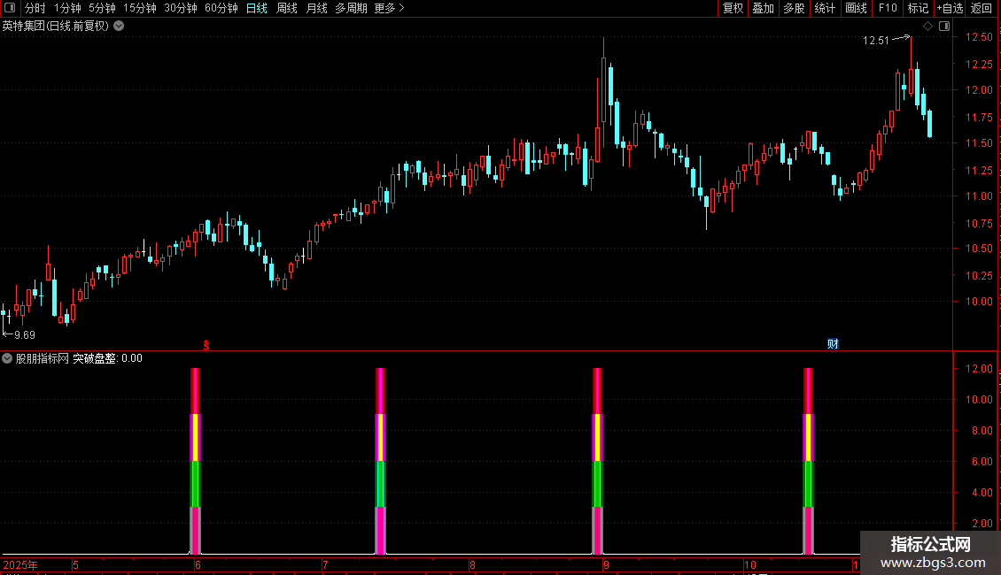 DRAWTEXT(突破盘整,1.5,''),COLORRED;
