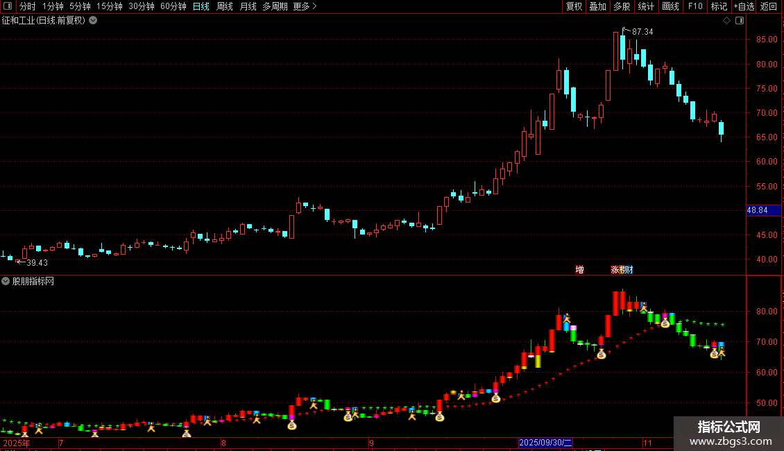 DRAWTEXT((CLOSE>MMM),MMM,'*'),COLOR0000FF,LINETHICK5;