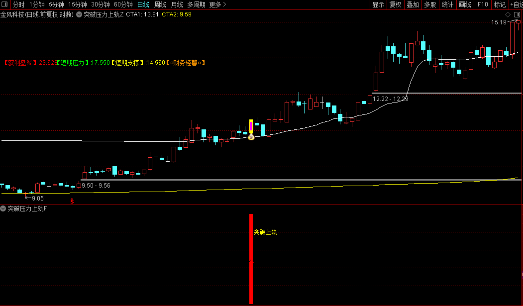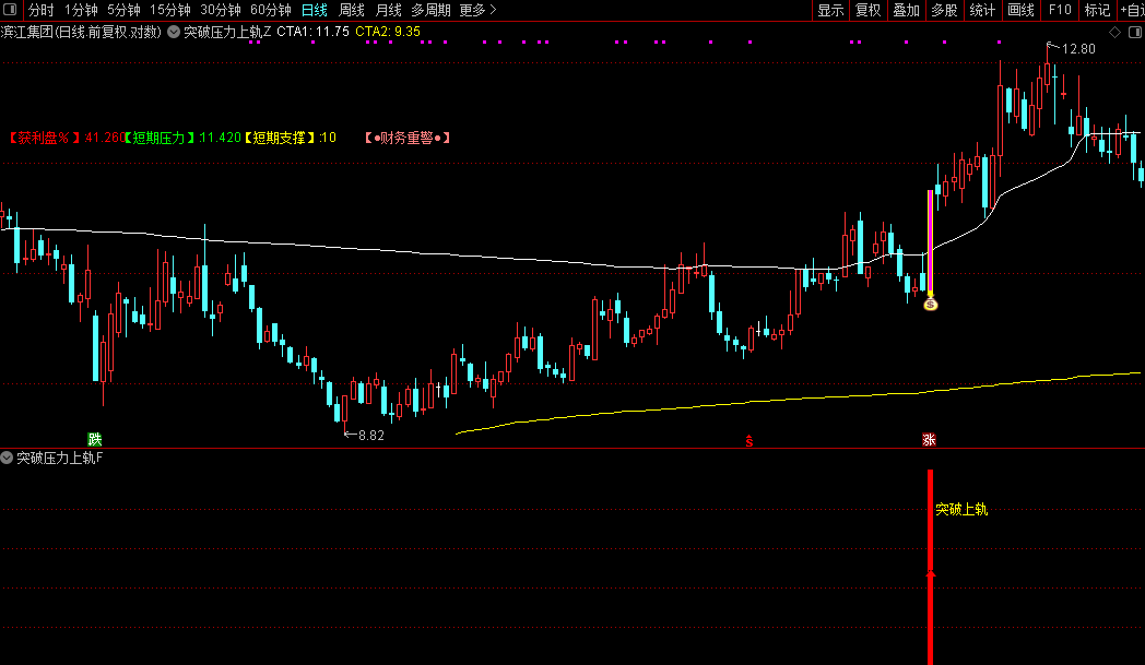 通达信【突破压力上轨】主副/选股叠加趋势异动信号与筹码突破信号源码