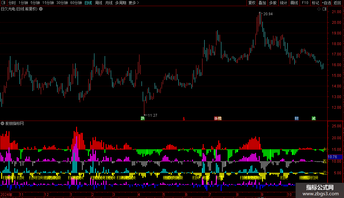 DRAWTEXT(ISLASTBAR=1,IF(VAR20>=0,15,15),'十天'),COLORYELLOW;